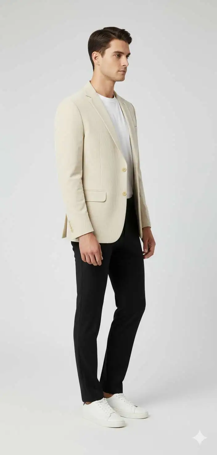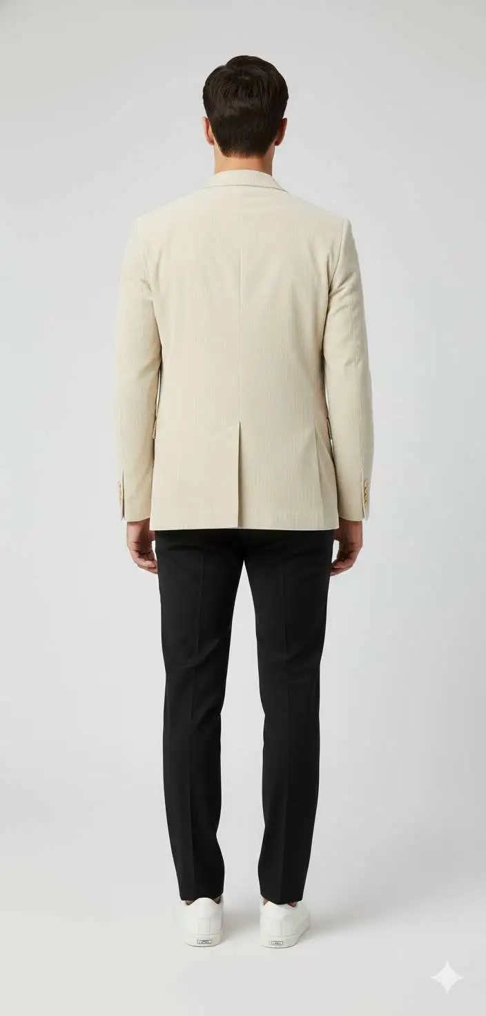 This blazer is easy to style and works well with black trousers, chinos, or even jeans. You can wear it with a t-shirt or shirt, depending on the occasion. The simple lapel design, smooth finish, and strong stitching show the brand’s experience and attention to detail.