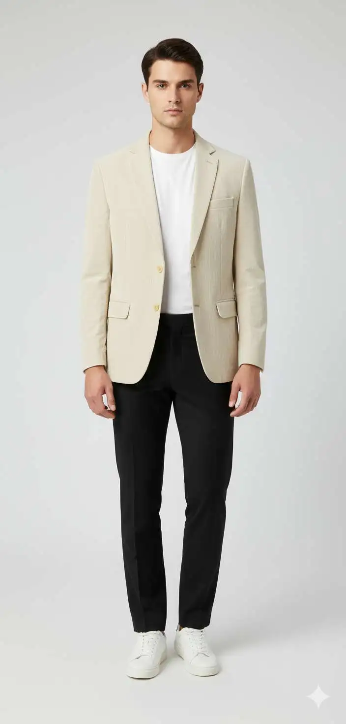 The Party Wear Cotrise Blazer is perfect for parties, evening events, and special gatherings. Made from good-quality fabric, it feels comfortable on the body and looks neat throughout the day. The soft cream color adds a classy touch, while the well-shaped fit helps you look sharp without feeling tight or heavy.